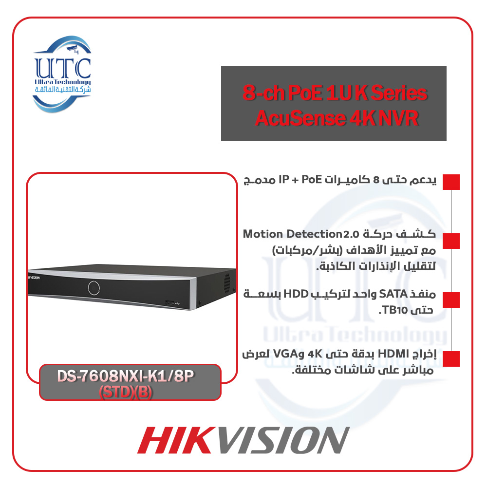 يعتبر جهاز DS-7608NXI-K1/8P من سلسلة K Series المتقدمة، الحل الشامل الذي يغنيك عن التوصيلات المعقدة؛ حيث يأتي مزوداً بـ 8 منافذ PoE مدمجة تسمح بتشغيل 8 كاميرات ومدهُا بالطاقة عبر كابل الشبكة مباشرة. الجهاز مدعوم بتقنية AcuSense التي تعتمد على الذكاء الاصطناعي لتقديم نظام حماية دقيق وفعال.
