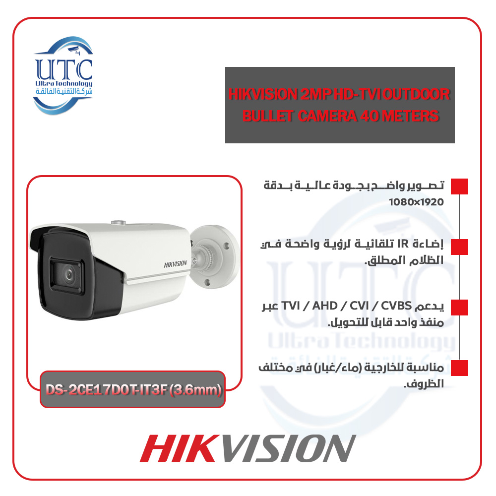 كاميرا هيكفيجن الخارجية (Bullet) بدقة 2 ميجابكسل – رؤية ليلية 40 متر